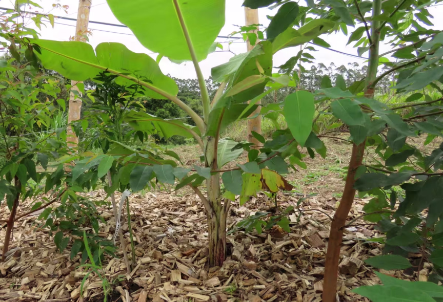 Diferentes plantas são cultivadas juntas e extraídas de acordo com as características de cada uma delas. Afinal, em uma floresta as plantas também estão juntas. "A bananeira é fundamental numa agrofloresta. É uma mãezinha. Rebrota rapidamente, retém água, e faz sombra para as plantas mais próximas", explica Jefferson, mostrando a árvore cercada por outras plantas menores.