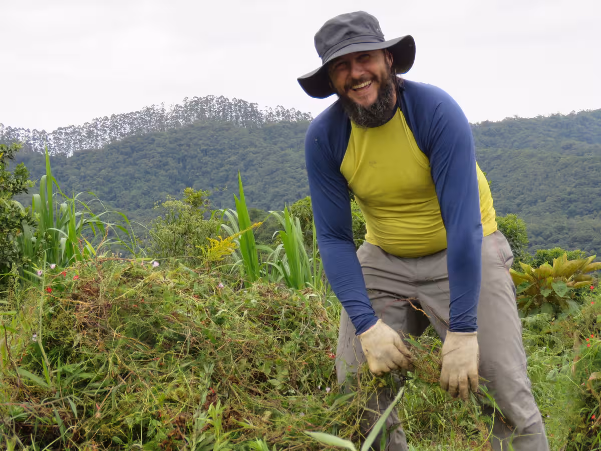 A Vivenda Árvore da Vida também acolhe voluntários que pretendem trabalhar e experimentar o sistema agroflorestal. Oito já passaram pelo local, ajudando nas plantações em funções específicas e recebendo suas partes das colheitas, dependendo do acordo. Desta vez, quem estava era o engenheiro agrônomo Gustavo Berlaver, de 30 anos.