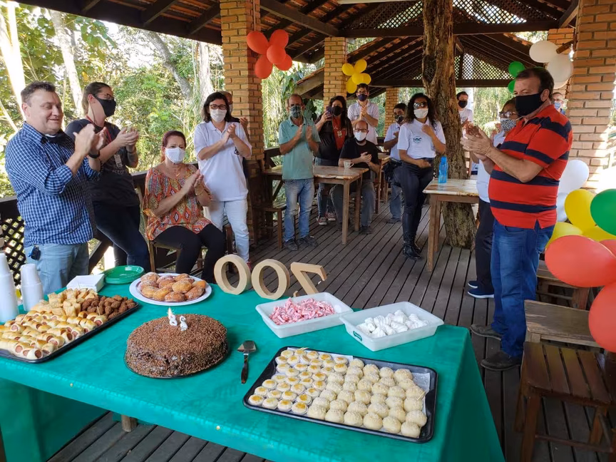 Para celebrar a data, colaboradores que atuam diariamente na manutenção e preservação do local fizeram uma comemoração simbólica com o corte de um bolo para lembrar da data.