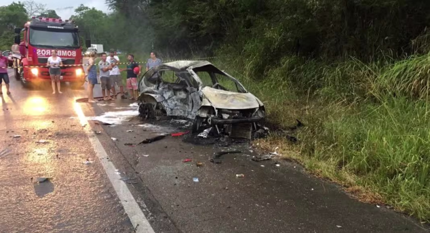 Carro pega fogo após acidente e duas pessoas morrem na BR-470, em Apiúna 19/12/2018 • Redação O Município