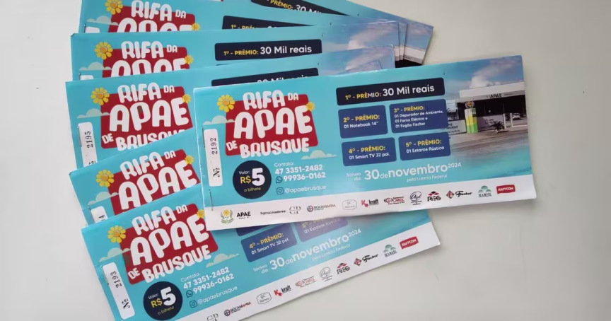 Vendas da rifa da Apae de Brusque encerram nesta quinta-feira; prêmio principal é R$ 30 mil 26/11/2024 • Redação O Município
