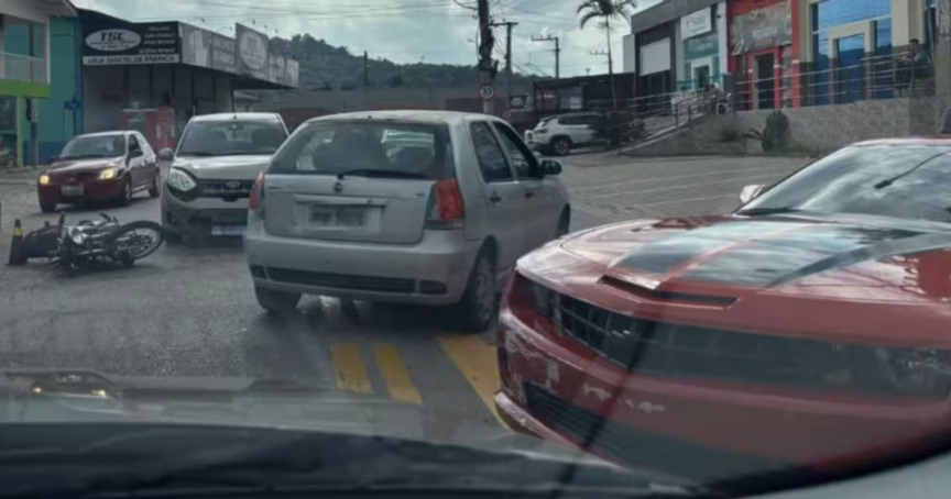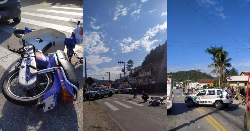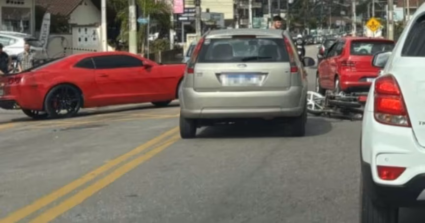 Acidente envolvendo motocicleta e dois carros, um deles de luxo, deixa pessoa ferida no Águas Claras, em Brusque 13/07/2025 • Otávio Timm
