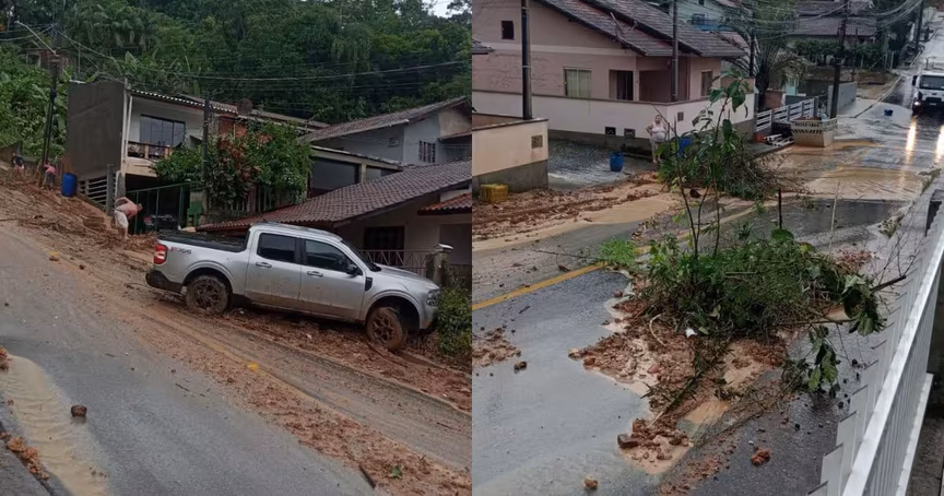 Rua afetada pelas chuvas no Águas Claras precisa de limpeza e contenção de deslizamento em Brusque
