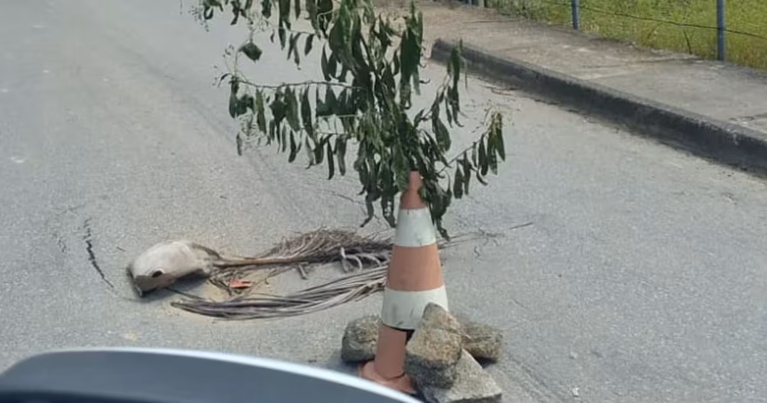 Moradores reclamam sobre buraco em rua no Águas Claras, em Brusque 22/03/2023 • João Henrique Krieger