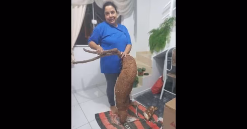Moradora de Brusque colhe mandioca de 20 quilos na horta de casa, no bairro Águas Claras 14/06/2022 • Thiago Facchini