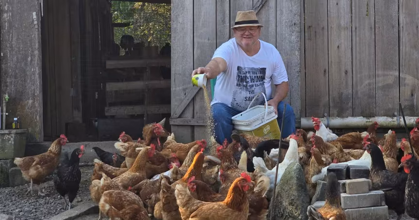 VÍDEO – Conheça o morador de Guabiruba que mantém um galinheiro exemplar