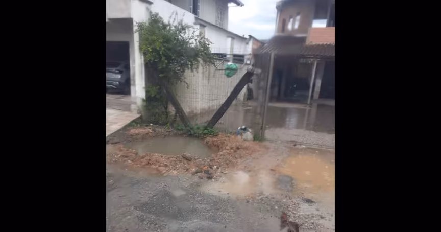 Problema com tubulação causa alagamento em pátio de casa no Bateas, em Brusque 20/12/2023 • Thiago Facchini
