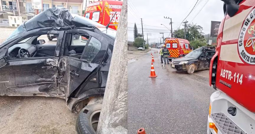 Acidente entre três carros no Cedro Alto, em Brusque, deixou cinco vítimas; bombeiros divulgam detalhes