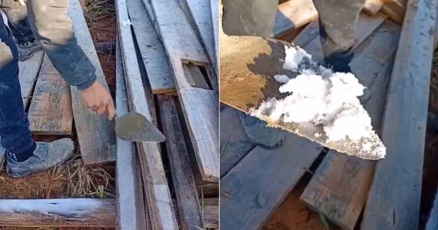 VÍDEO – Homem tira camada de gelo de tábuas de madeira com espátula no Cedro Alto, em Brusque
