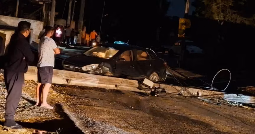 Carro derruba poste e causa apagão no Cedro Alto, em Brusque