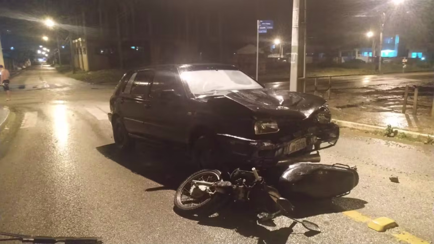 Motociclista é levado ao hospital após colisão com carro no Dom Joaquim