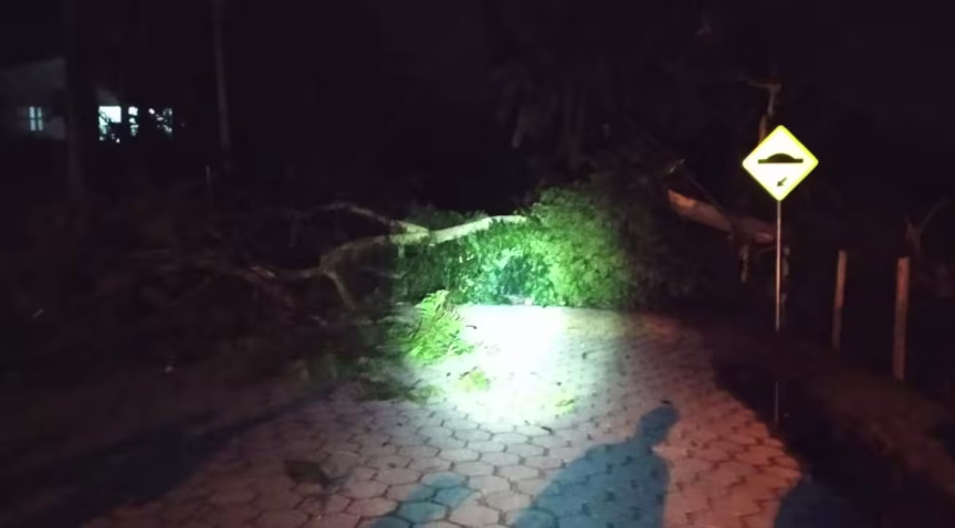 Árvore cai no meio da rua após trovoada no bairro Imigrantes em Guabiruba 21/12/2019 • Redação O Município
