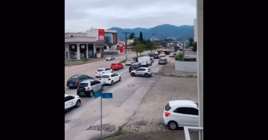 VÍDEO – Fila de veículos é registrada na avenida Hugo Schlosser após fechamento de rotatória no Jardim Maluche
