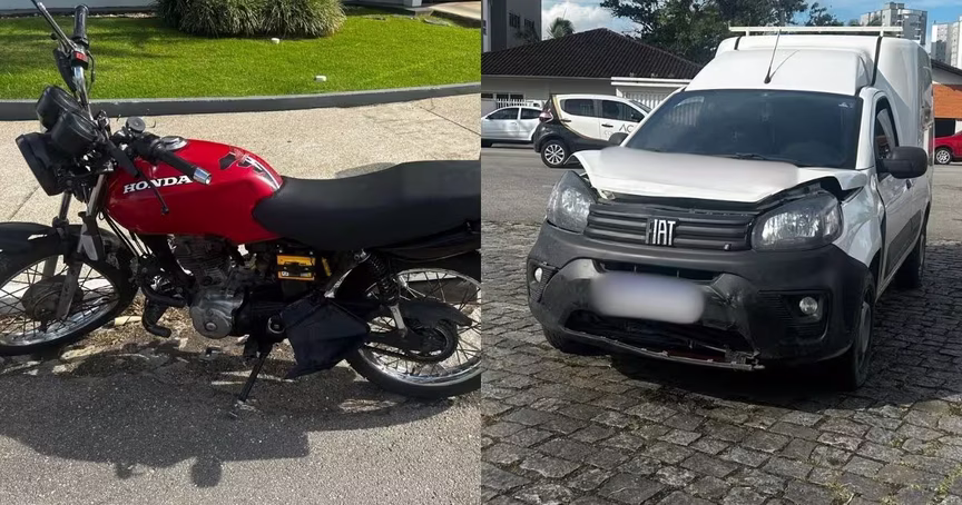 Fiorino e moto colidem no bairro Jardim Maluche, em Brusque