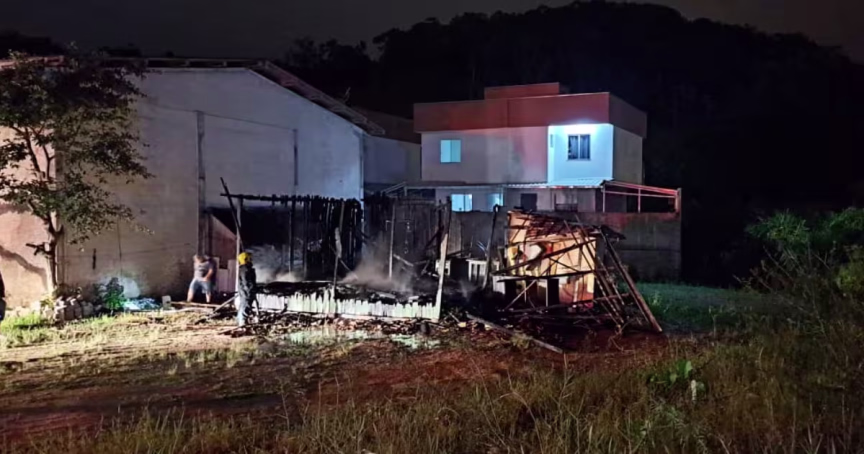 Casa fica totalmente destruída em incêndio no bairro Jardim Maluche, em Brusque 29/10/2022 • Beatriz Coan