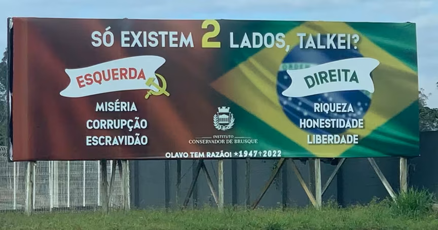 Justiça manda retirar outdoor que relaciona esquerda com escravidão em Brusque 25/08/2022 • Thiago Facchini