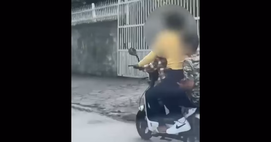 VÍDEO – Mulher é vista pilotando moto elétrica com duas crianças na garupa em Brusque