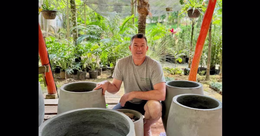 Morador de Guabiruba resgata técnica ancestral e recria vasos de cimento