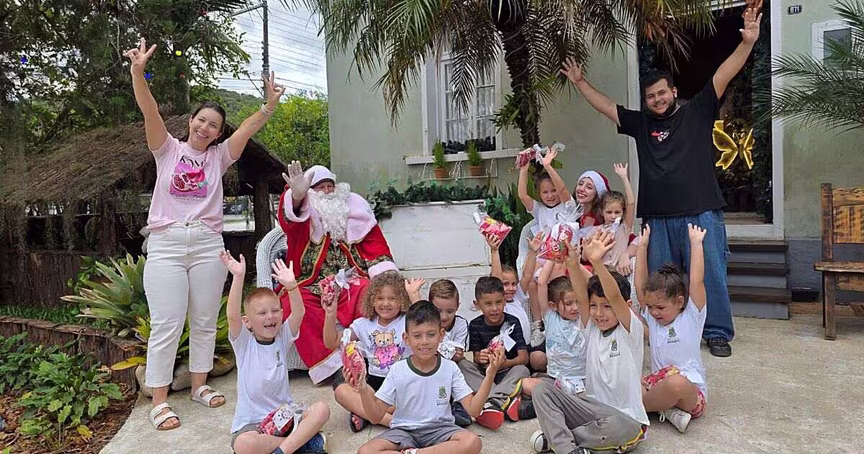 Natal aproxima creche e Casa Atlântica em visita com 300 crianças em Brusque
