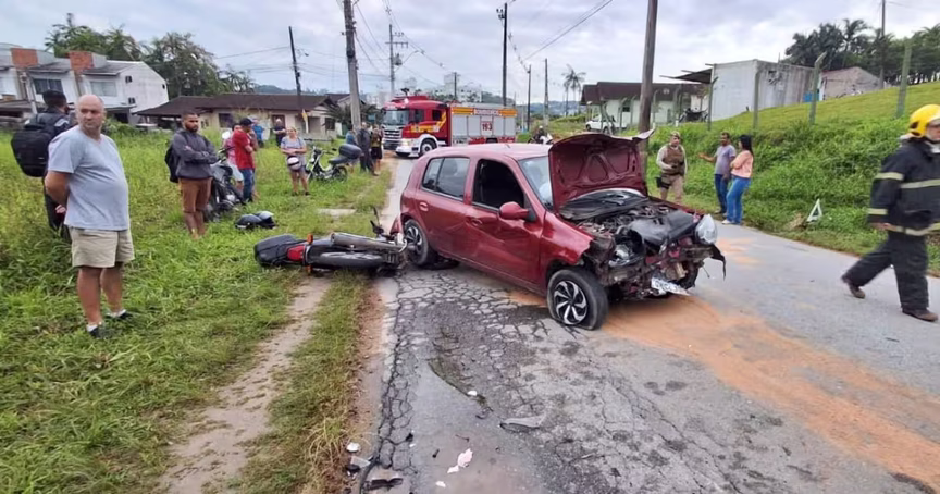 VÍDEO – Motociclista fica gravemente ferido após acidente entre quatro veículos no Rio Branco, em Brusque
