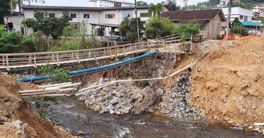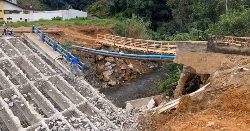 Saiba como estão obras da ponte que desabou no bairro Guarani, em Brusque 10/11/2021 • Redação O Município