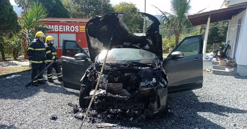 Land Rover é destruída após incêndio no São Pedro, em Guabiruba
