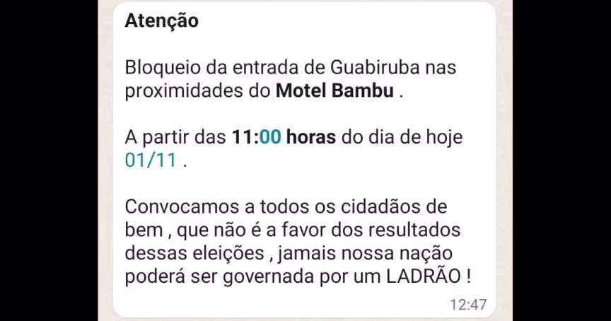 Polícia Militar nega bloqueio de estrada que liga Brusque a Guabiruba pelo bairro São Pedro