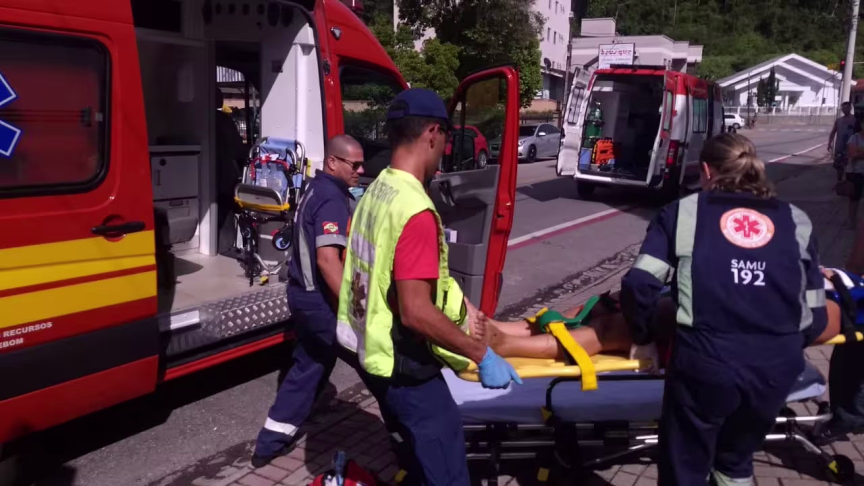 Jovem fica ferido após colisão entre moto e carro, no bairro São Pedro, em Guabiruba 08/01/2019 • Marcelo Gouvêa