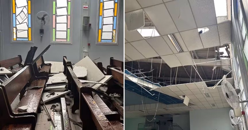 Igreja no bairro Steffen, em Brusque, é devastada pela tempestade desta quinta-feira 13/02/2025 • João Vítor Roberge