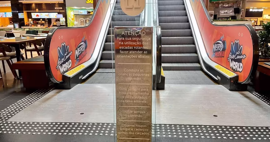 Criança fica com mão presa em escada rolante no shopping de Balneário Camboriú