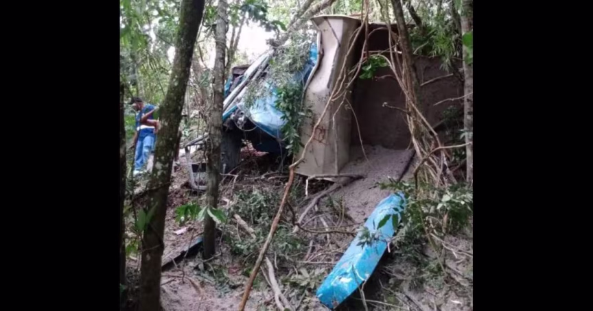 Caminhão capota e cai em ribanceira com 15 metros em Balneário Camboriú