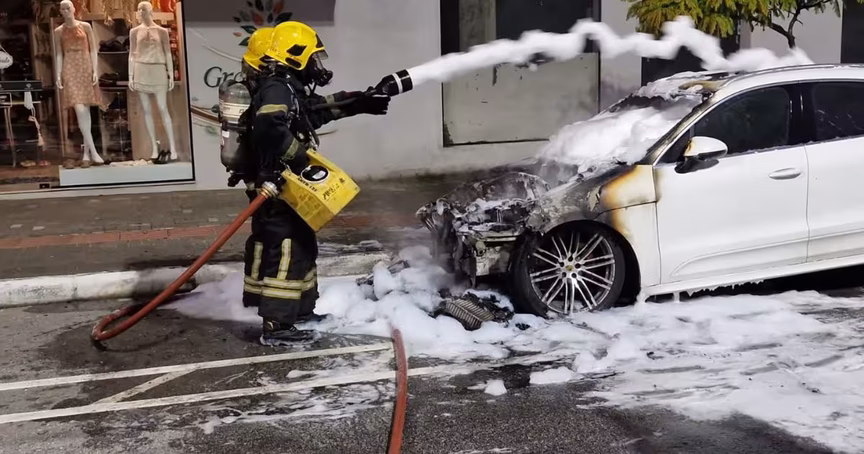 VÍDEO – Carro de luxo é consumido por incêndio em Balneário Camboriú