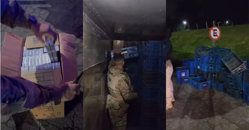 VÍDEO – PRF encontra 250 mil maços de cigarros contrabandeados em carreta na BR-101, em Biguaçu