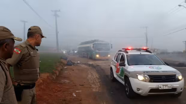 PM desbloqueia via para garantir saída de caminhões com combustível em Biguaçu 30/05/2018 • Redação O Município