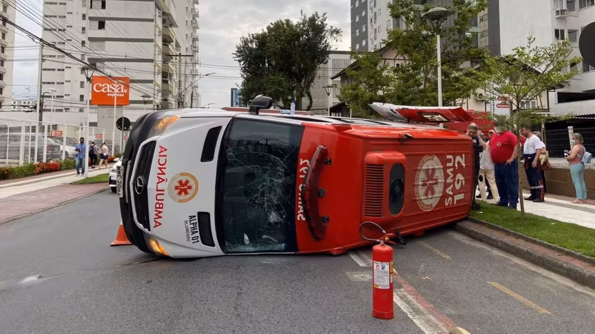 Ambulância tomba em acidente e paciente que aguardava atendimento morre em Blumenau