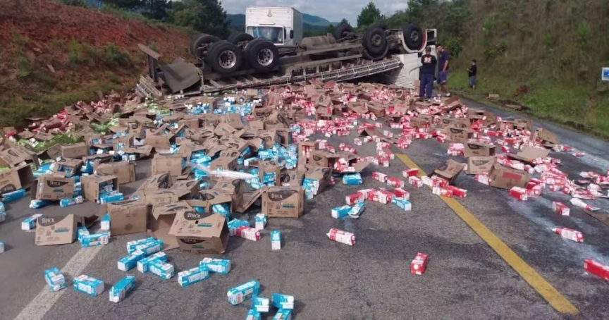 Caminhão tomba, derrama carga de leite e interdita rodovia da Serra Catarinense 07/12/2021 • Redação O Município