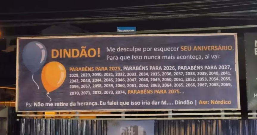 “Dindão! Me desculpe”: outdoor de afilhado que esqueceu aniversário de padrinho chama atenção em Blumenau
