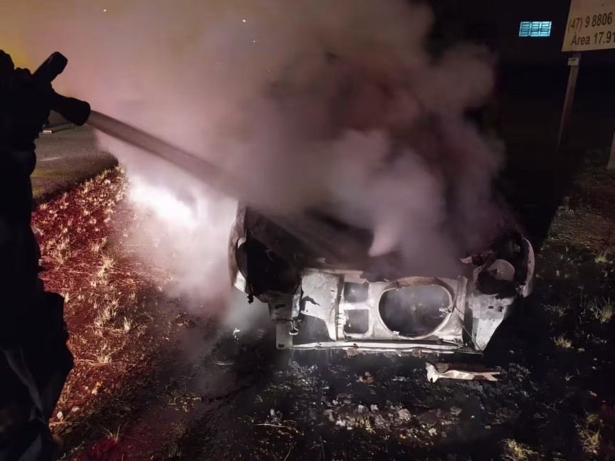 Carro é destruído após ser atingido por incêndio na rodovia Antônio Heil 03/02/2021 • Redação O Município
