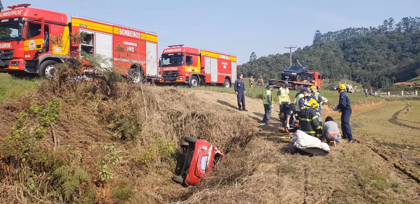 Duas crianças e três adultos ficam feridos após carro capotar na SC-477, no Vale do Itajaí 11/09/2020 • Redação O Município