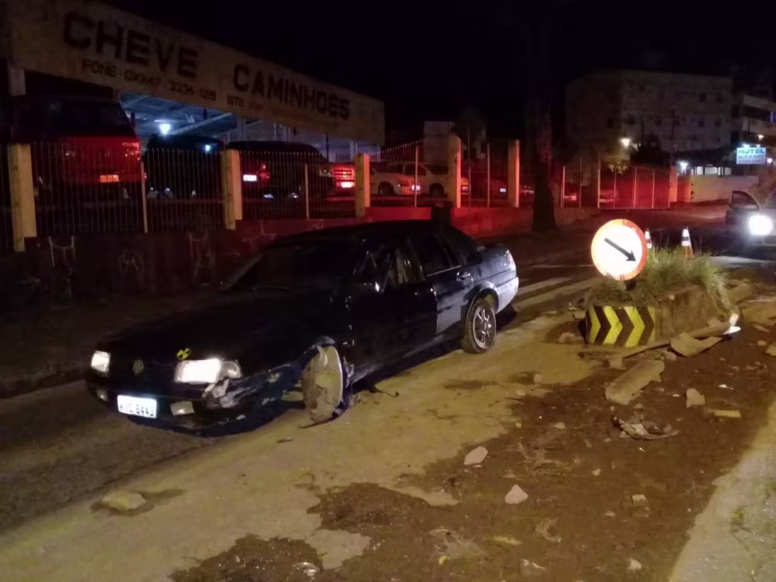 Condutor embriagado é preso após bater em ilha de segurança, em Blumenau