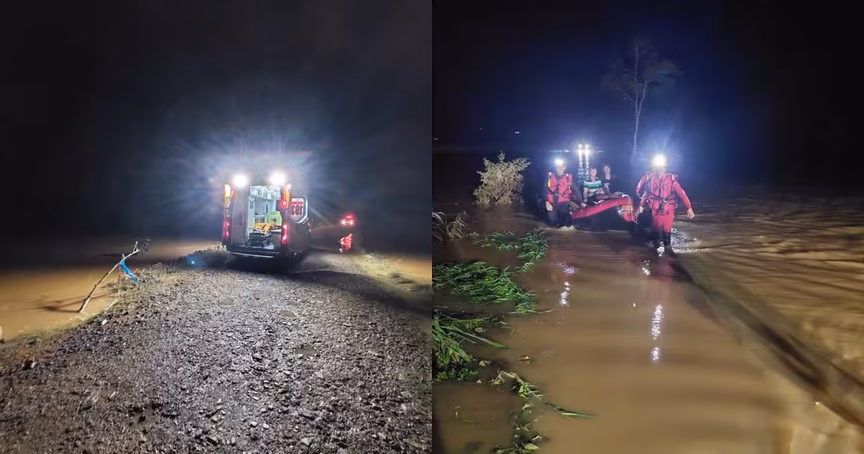 Após ficar ilhada devido a fortes chuvas, mulher grávida precisa ser resgatada de bote no Médio Vale