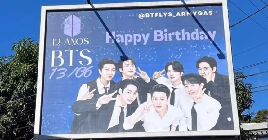 Fãs criam outdoor em comemoração ao aniversário do grupo musical sul-coreano BTS em Blumenau