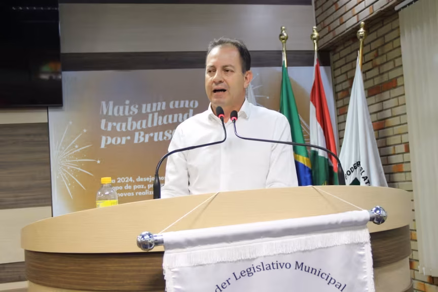 Prefeito projeta “diversos desafios” para 2024 em discurso na primeira sessão do ano na Câmara de Brusque