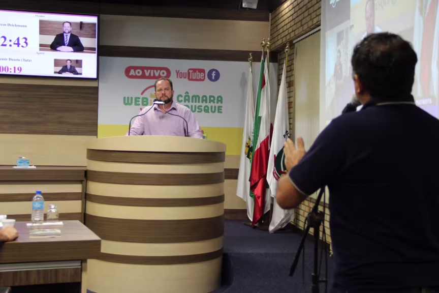 Presidente da Câmara de Brusque explica interrupção das sessões itinerantes 03/12/2019 • Bruno da Silva