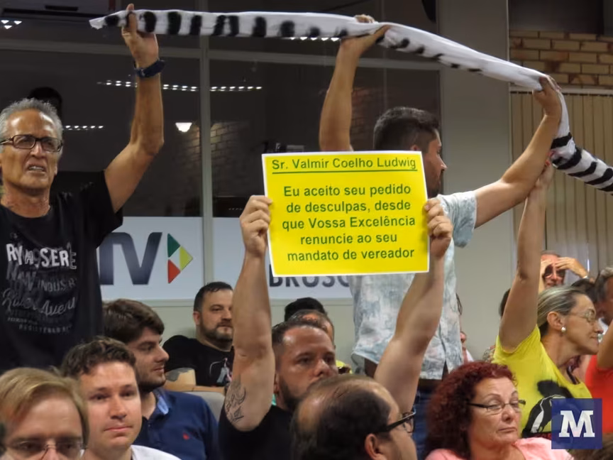 Manifestantes contra e a favor ao vereador Valmir Ludvig causam tumulto na Câmara 15/03/2016 • Redação O Município