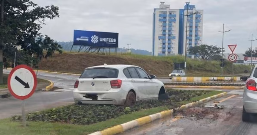 Carro é flagrado em cima de canteiro no Santa Terezinha, em Brusque