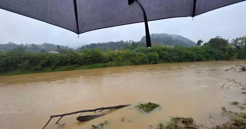 Brusque tem alta no nível do rio Itajaí-Mirim após chuva; confira as cenas