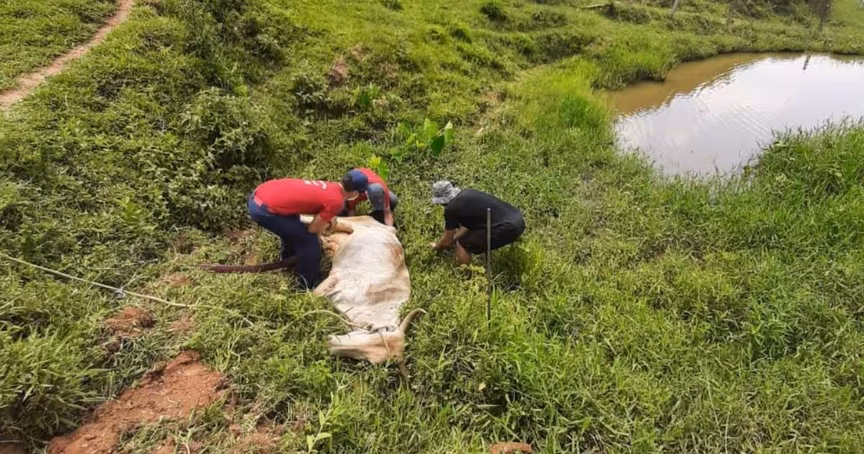Vaca cai em vala de drenagem e é resgatada pelos bombeiros em Brusque 24/01/2022 • Redação O Município
