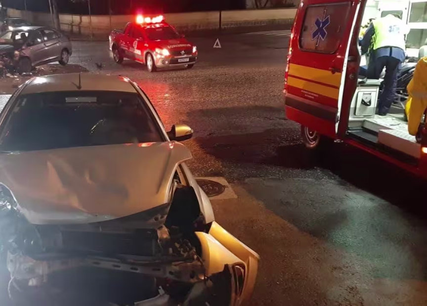 Homem fica ferido após colisão entre carro e moto no bairro Limeira Baixa, em Brusque 21/09/2021 • Redação O Município