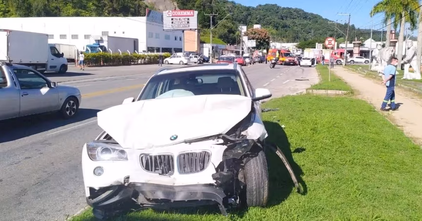 Acidente envolvendo carro e moto deixa uma pessoa ferida em Guabiruba 03/05/2021 • Redação O Município